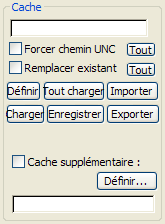 Permet de spécifier le chemin d'accès et le nom du fichier cache de l'objet sélectionné. Cliquez sur Set, accédez au répertoire, saisissez le nom de fichier et cliquez sur Enregistrer.
