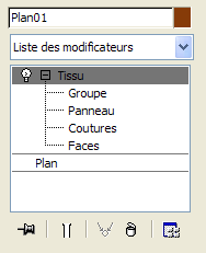 Le modificateur Tissu constitue la base du module Tissu, et est appliqué à tous les objets de la scène que doit englober la simulation de tissu. Il sert à définir les objets tissu et collision, à affecter des propriétés et à exécuter la simulation. D'autres commandes permettent la création de contraintes, le déplacement interactif du tissu et l'effacement de parties de la simulation.