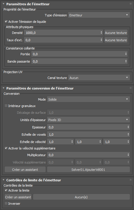 - Active le contrôle de la limite pour délimiter la zone d'émission du fluide.