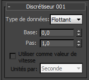 La discrétisation repose sur deux valeurs : Base et Pas. Pour chaque valeur entrante, le pas est multiplié par un nombre entier positif ou négatif, puis ajouté à la base pour obtenir un résultat aussi proche que possible de la valeur d'entrée ; l'entrée est ensuite arrondie à cette valeur. Avec une base "b" et un pas "p", les valeurs de sortie possibles du sous-opérateur sont b, b+p, b-p, b+2p, b-2p, b+3p, b-3p, etc.