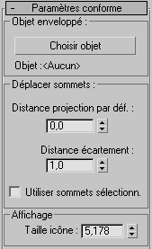 - Cliquez sur ce bouton, puis sélectionnez un objet dans la scène. L'objet sélectionné devient l'obstacle derrière lequel les sommets de l'objet lié seront poussés.