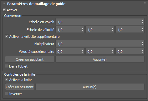 Ce panneau déroulant s'affiche uniquement lorsqu'un maillage de guide existant est sélectionné en haut ou à gauche (selon que la vue de simulation est disposée verticalement ou horizontalement).