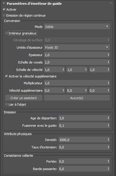 Contrôle le mode de voxelisation de l'émetteur : Uni, Coque, Solide (robuste).