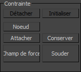 - Les contraintes impliquant d'attacher les sommets à un autre objet (contrainte Noeud) contiennent des informations concernant les positions relatives des sommets du groupe par rapport à l'autre objet. Ces informations sont créées en même temps que la contrainte. Cliquez sur ce bouton pour les régénérer.