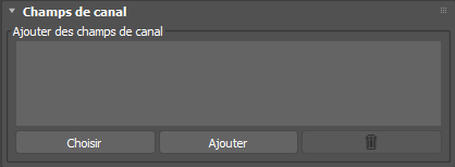 - Cliquez sur Choisir pour sélectionner dans la scène des objets à ajouter en tant que champ de canal, ou cliquez sur Ajouter pour sélectionner un champ de canal dans une boîte de dialogue. Cliquez sur Supprimer pour supprimer un champ de canal sélectionné.