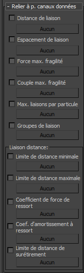 - Un canal de données réelles définit l'espacement de liaison pour une particule. Les données d'un canal de données sont prises en compte uniquement si l'option Espacement de liaison est activée (dans le panneau déroulant mParticles Colle