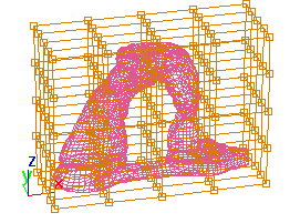 Pour que le treillis soit placé à l'extérieur de l'objet, activez l'option Tous les sommets. Pour intervenir uniquement sur les sommets situés à l'intérieur du treillis, sélectionnez Seulement dans volume et positionnez le treillis en conséquence.