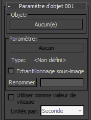 - En interne, la vitesse des particules d'un système Flux de particules est en unités par repère (1 repère = 1/4800ème de seconde). En revanche, les paramètres de vitesse des opérateurs Flux de particules sont exprimés en unités par seconde. Pour convertir les valeurs affichées en valeurs internes, activez l'option Utiliser comme valeur de vitesse et utilisez le réglage par défaut Unités par seconde. De cette façon, vous pouvez accéder, par exemple, à la vitesse définie par l'opérateur Vitesse standard de Flux de particules. Cette option est uniquement disponible lorsque le paramètre d'entrée est de type Réel.