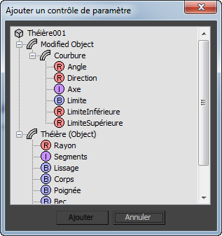 - Le paramètre d'objet à utiliser par le sous-opérateur. Après avoir indiqué l'objet (voir ci-dessus), cliquez sur ce bouton pour ouvrir la boîte de dialogue Ajouter un contrôle de paramètre. Choisissez le paramètre dans la liste de la boîte de dialogue, puis cliquez sur Ajouter.
