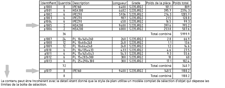 Si le style de détail utilise l'option Boîte de sélection ou Boîte de sélection avec Xrefs, ce texte ne sera pas ajouté à la liste.