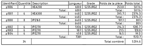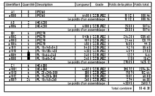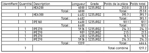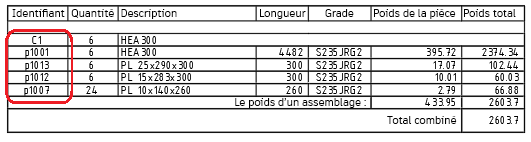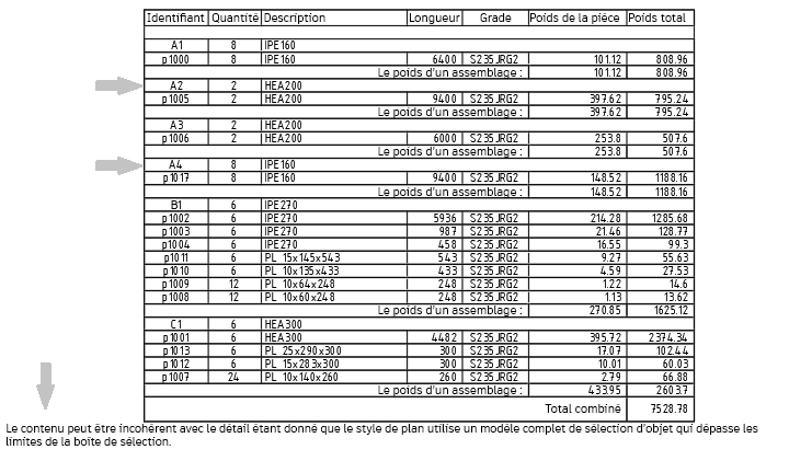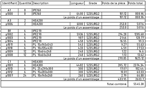 Lorsque le plan contient des détails de Pièces secondaires et Plans d'ensemble, la nomenclature contient tous les éléments de ces vues.