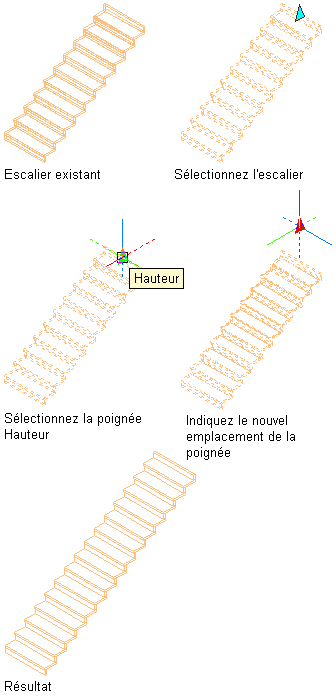 Modification de la hauteur d'un escalier à l'aide des poignées
