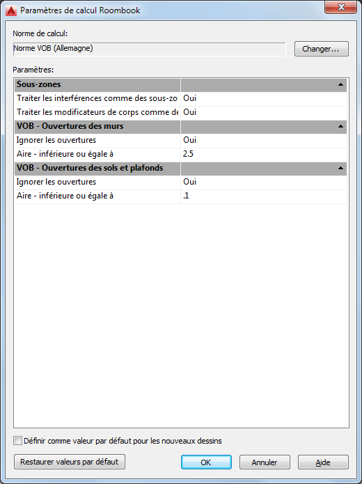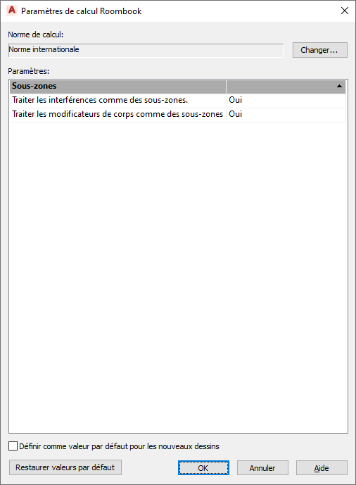 Ce champ affiche la norme de calcul courante. Pour changer de norme, cliquez sur Changer.