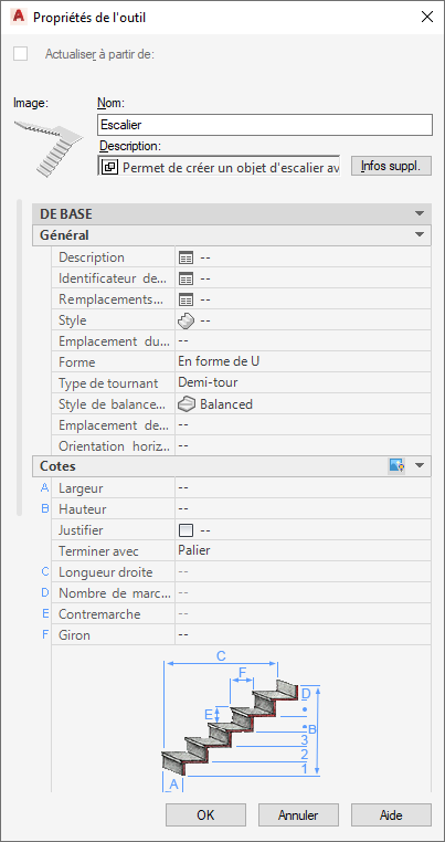 Avant de créer un outil de style d'escalier, il peut être utile de prendre en considération les paramètres prédéfinis facultatifs suivants :