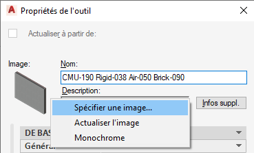 Il n'est pas possible de créer des icônes à partir d'objets contenant des blocs personnalisés, des murs-rideaux ou des blocs porte/fenêtre avec des styles imbriqués. Si vous devez créer une icône à partir d'un bloc personnalisé, spécifiez une image externe.