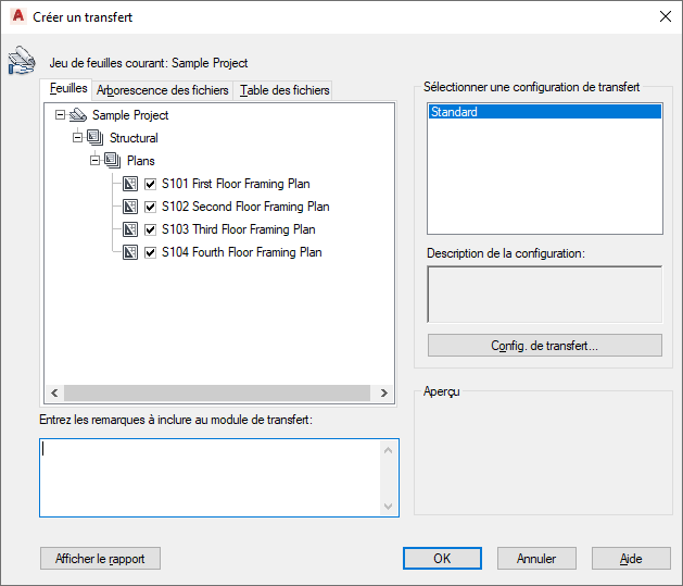 Cela revient, en fait, à créer un ensemble en vue de procéder à une transmission au format électronique. Les fichiers de dessin de l'ensemble de transmission contiennent tous les fichiers dépendants, tels que les références externes et les fichiers de polices.