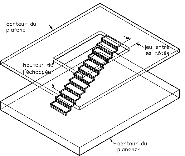 Définition de la hauteur de l'échappée et du jeu latéral pour un escalier et un objet espace