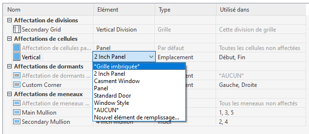 Pour créer une grille imbriquée dans une unité de mur-rideau