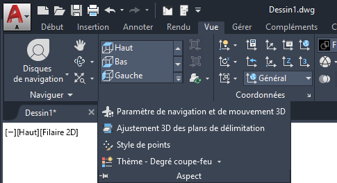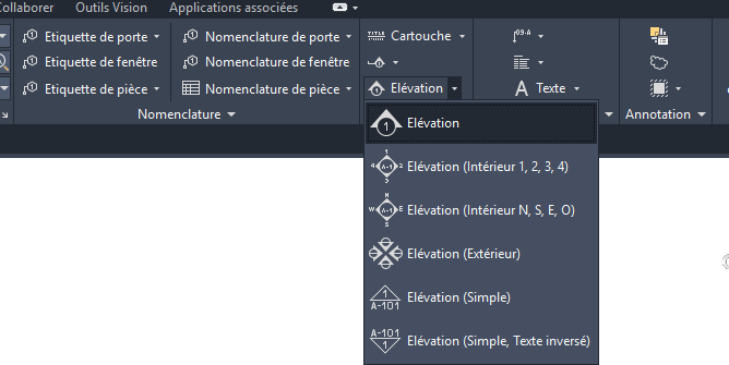 Certaines options du ruban sont groupées sous un menu déroulant. Pour y accéder, il suffit de cliquer sur la flèche en regard de la commande.