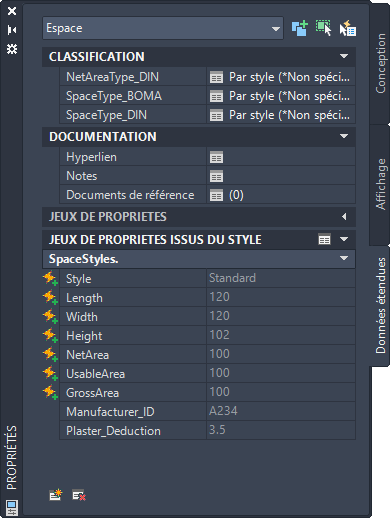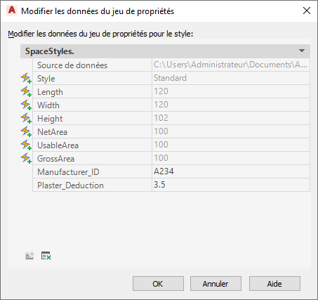 Cette procédure permet de modifier les valeurs des données de jeux de propriétés manuelles spécifiques aux styles qui sont associées aux objets dans votre dessin.