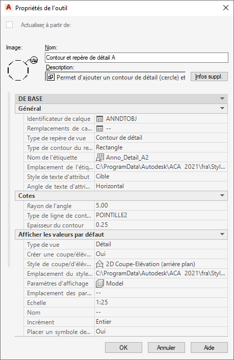 La fonction d'un style de coupe/élévation 2D est d'automatiser les caractéristiques d'affichage du dessin au trait dans l'objet de coupe/élévation.