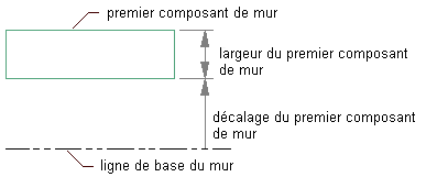 Remarque : Ne définissez pas des composants de mur ayant des décalages d'élévation supérieurs au sommet du mur ou inférieurs à la base du mur. Les murs dont certains composants sont définis de cette manière ne sont pas correctement nettoyés et ils risquent ne pas s'afficher correctement si vous modifiez leur ligne de toit ou de plancher. Pour éviter ces problèmes, définissez des composants de mur ayant des décalages d'élévation supérieurs à la hauteur de base ou inférieur à la ligne de base.