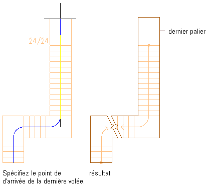 | terminer le déploiement de l'escalier par un palier | sélectionnez Palier dans la zone Terminer avec. ![]() |