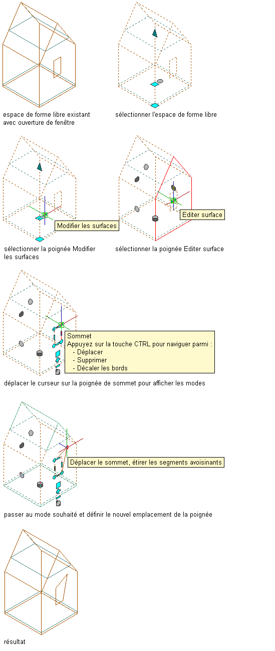 Déplacement du sommet d'une ouverture de fenêtre sur une surface d'espace libre