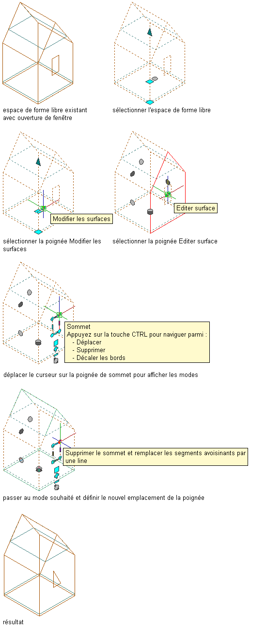 Suppression du sommet d'une ouverture de fenêtre sur une surface d'espace de forme libre