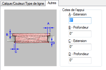 - Dans la fiche de travail Cotes de l'appui, entrez les cotes de l'extension et de la profondeur de l'appui.