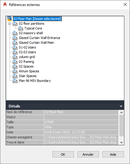 - Dans la boîte de dialogue Références externes, observez les détails de la Xréf :
