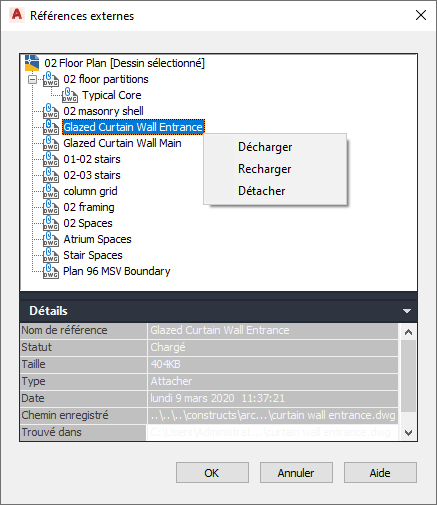 Vous pouvez décharger, recharger ou détacher la Xréf attachée.