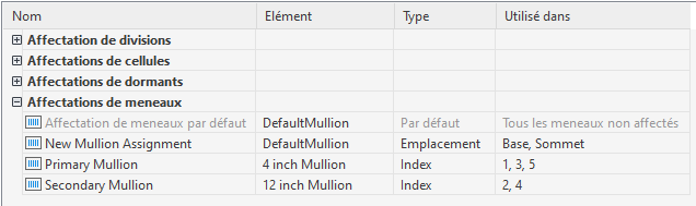 - Sélectionnez une définition de meneau dans la colonne Elément.
