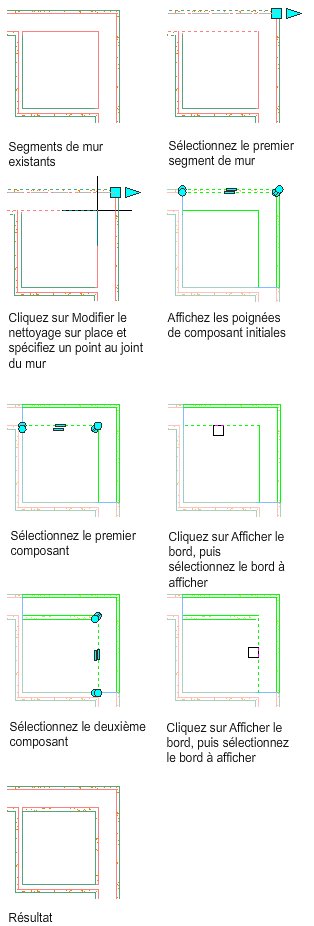 Cette procédure permet de modifier une intersection de mur en affichant un bord de composant de mur masqué.