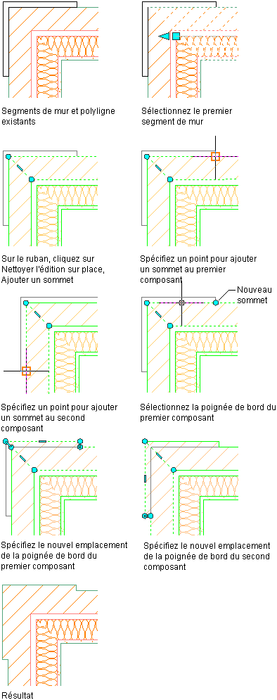 Cette procédure permet de modifier une intersection de mur en ajoutant un sommet sur ou près d'un composant de mur. Le fait d'ajouter des sommets à un bord de composant vous donne plus d'options pour modifier sa forme.