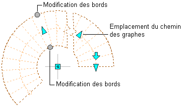 Poignées permettant de changer l'emplacement du chemin des graphes d'un escalier en colimaçon et de modifier les bords