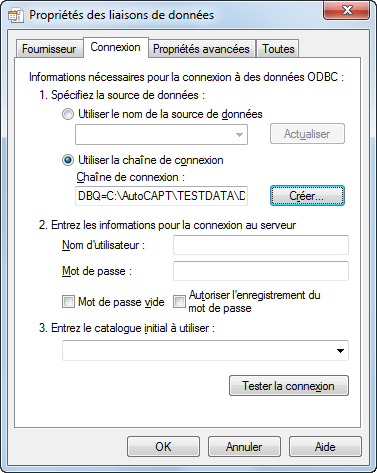 - Pour vérifier si la connexion à la source de données fonctionne correctement, cliquez sur Tester la connexion.
