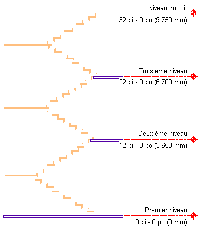 L'illustration suivante présente les niveaux tels qu'ils doivent apparaître dans une vue d'élévation :