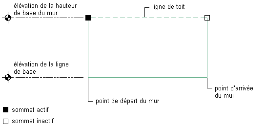 Vous pouvez modifier les lignes de toit et de plancher d'un mur en vue de créer un mur non rectangulaire.