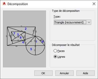 Cette procédure permet de spécifier le type des sous-entités issues de la décomposition d'un espace et le type des entités AutoCAD issues de la conversion de l'espace décomposé.