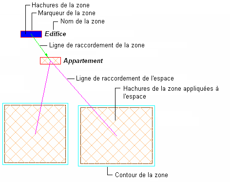 Si vous affectez un modificateur de calcul à une zone, les valeurs de l'aire et du périmètre des espaces attachés à la zone seront modifiées par le modificateur de calcul.