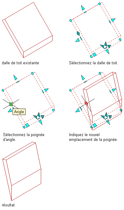 Utilisation de la poignée d'angle pour modifier la pente de la dalle de toit