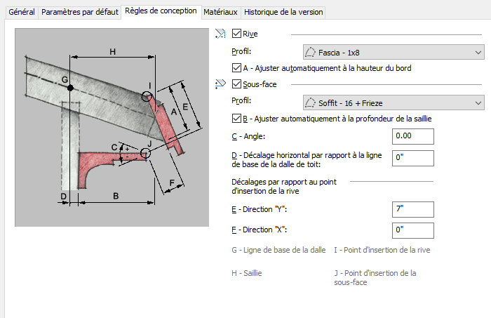 Cette procédure permet de spécifier une rive et une sous-face pour un style de bord de dalle ou dalle de toit. Le dessin doit contenir des profils pour la rive et la sous-face.