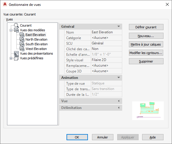 Cette procédure permet d'ouvrir une vue de l'espace objet dans un dessin ne faisant pas partie d'un projet.