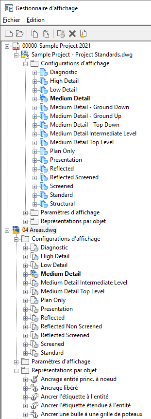 Il est possible de synchroniser chacun des composants du système d'affichage dans un dessin de projet.