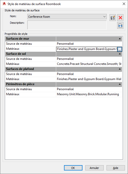 - Dans la boîte de dialogue Style de matériau de surface Roombook, cliquez sur le bouton Parcourir.
