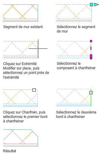 Cette procédure permet de modifier une extrémité de mur en chanfreinant un coin de composant de mur.