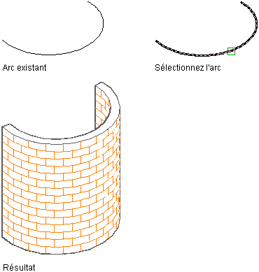 spécifier la ligne de base du mur à partir d'une ligne ou d'un arc existant dans le dessin