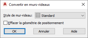 La fiche de travail Convertir en murs-rideaux s'ouvre.