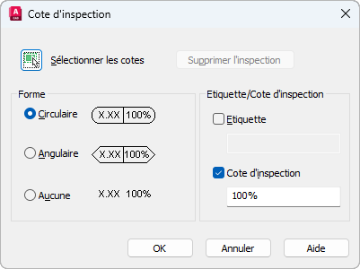 Vous permet d'ajouter ou de supprimer une cote d'inspection des cotes sélectionnées.